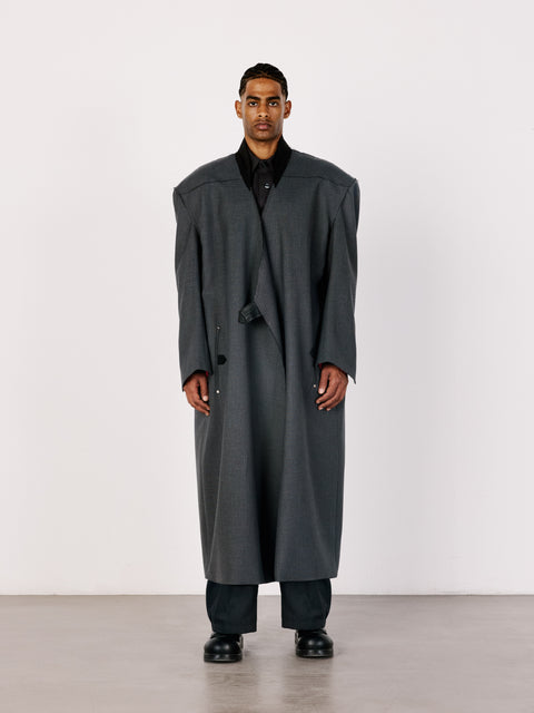 oversized long wrap coat in structured woven fabric.